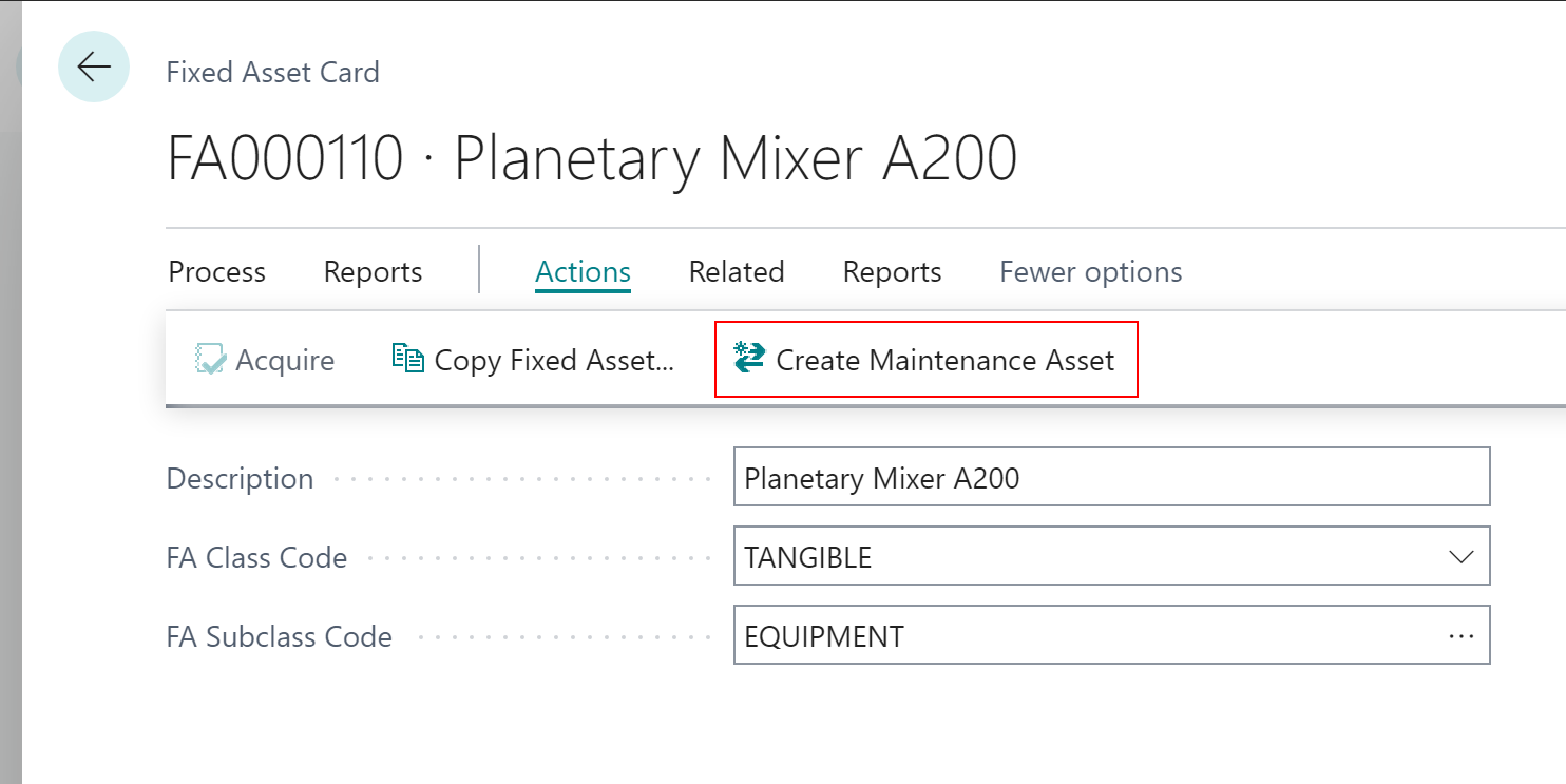 In Dynaway EAM for Dynamics 365 Business Central, we try to support both scenarios. If the finance team is required to create the asset based on maintenance assets, then they could do it from the Asset Card.